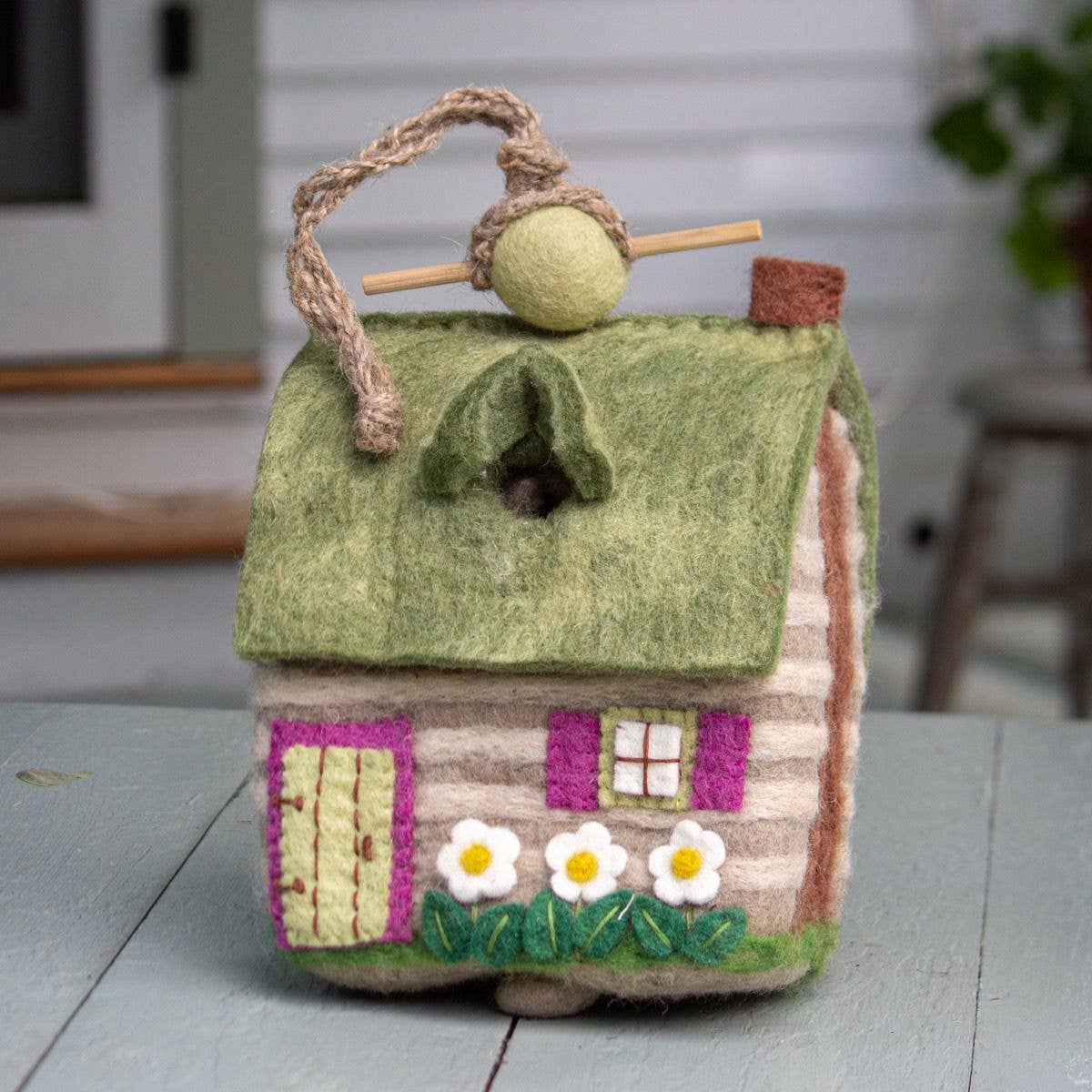 The original handfelted birdhouse! Everyone loves these highly decorative and adorable gifts for indoor use, or hang outdoors in a protected area (on a porch) where wrens, common all over North America, like to nest and you'll be so surprised!